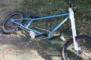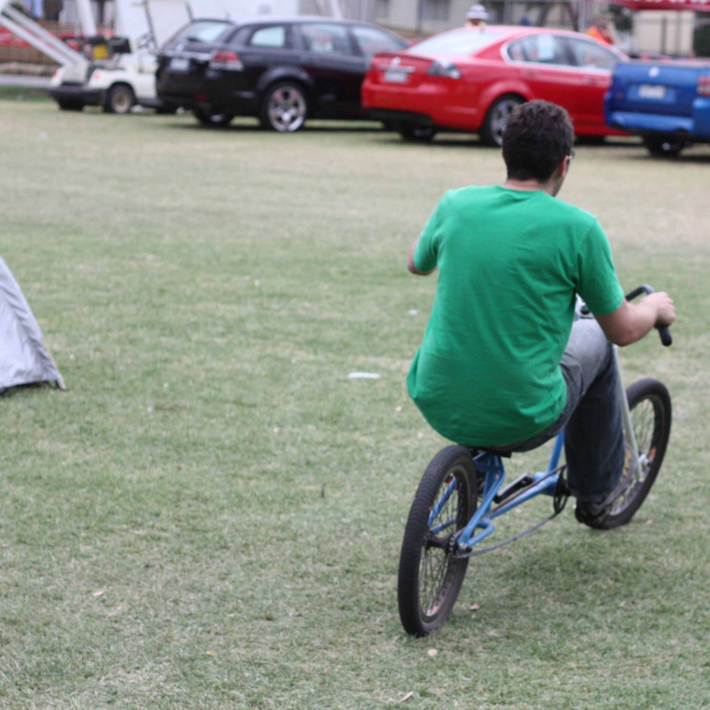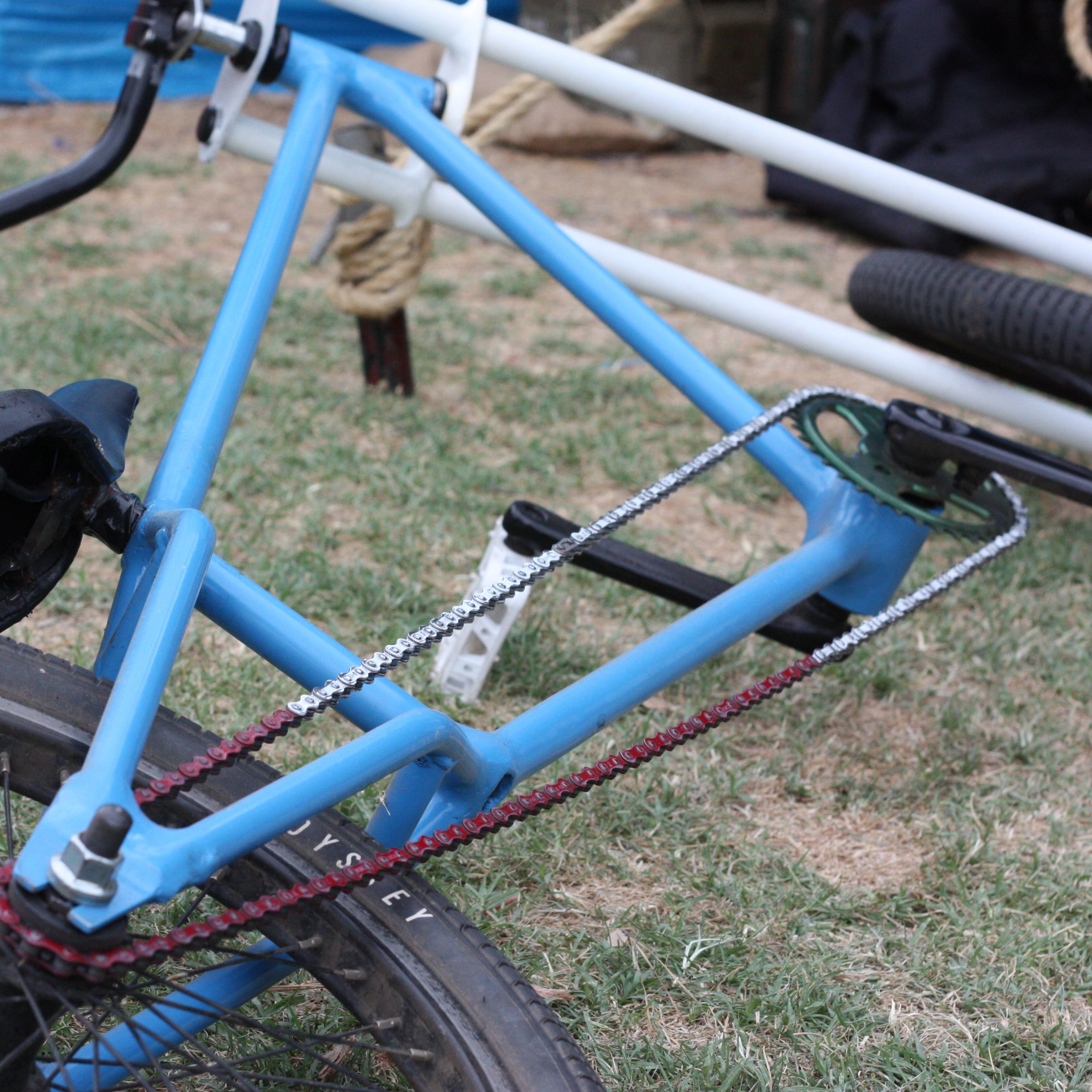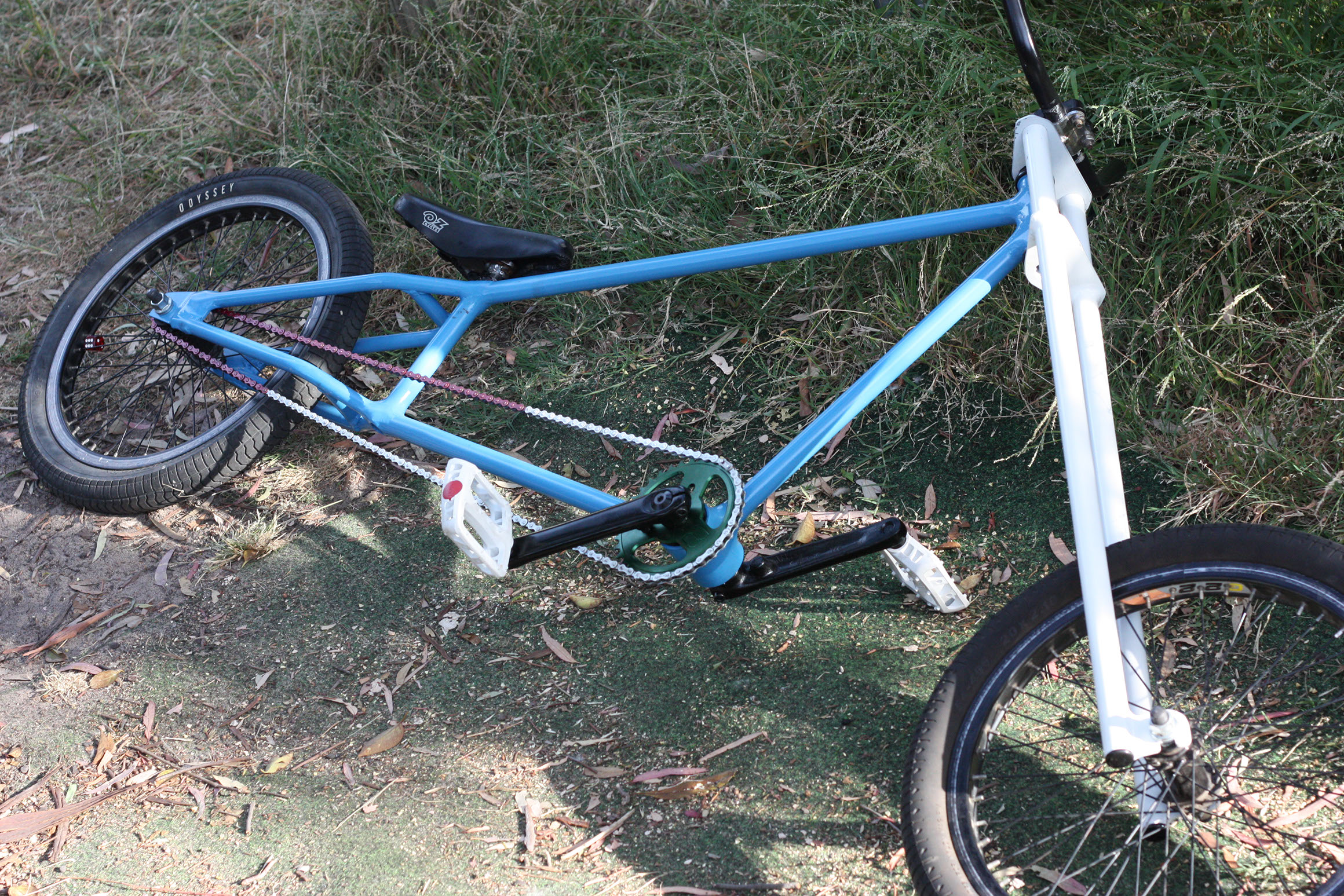 This ridiculous bike was heaps of fun to design, weld, paint and assemble. It Is impractical to ride, has no breaks, but when you ride it you truly are the king of the road - as long as it is a flat road. Inspiration (of course) came from dragsters and chopper motorbikes.