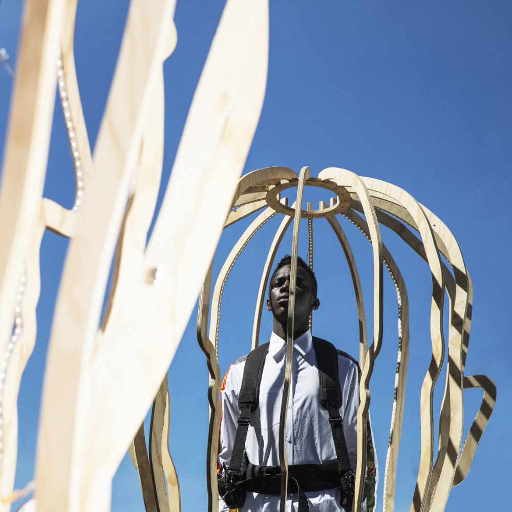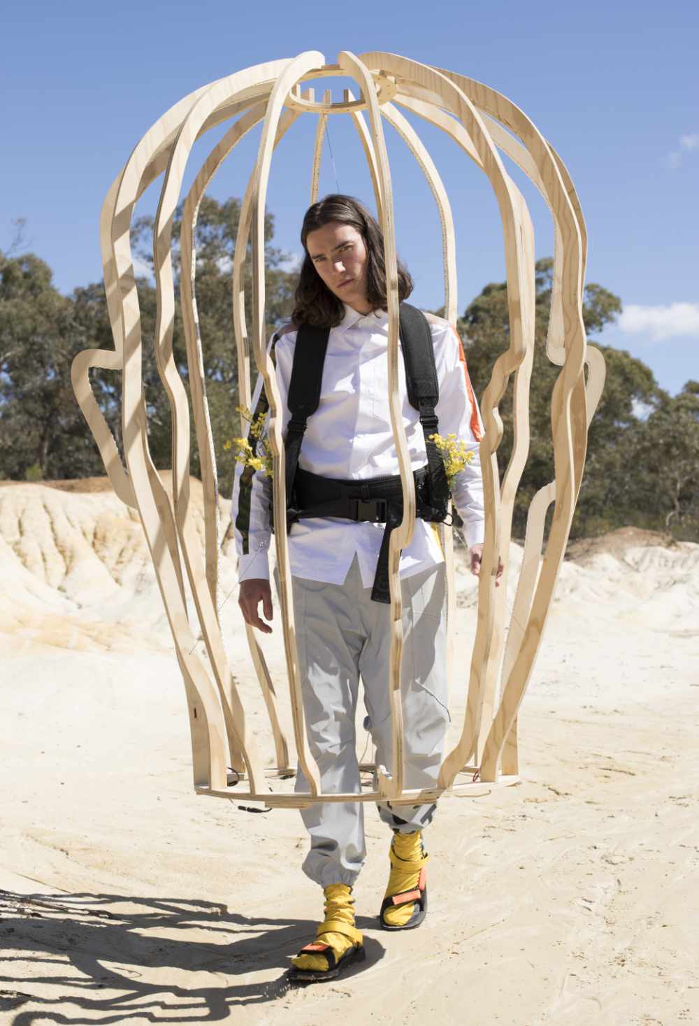 I collaborated with fashion designer Tom Lake to make a wearable plywood sculpture.